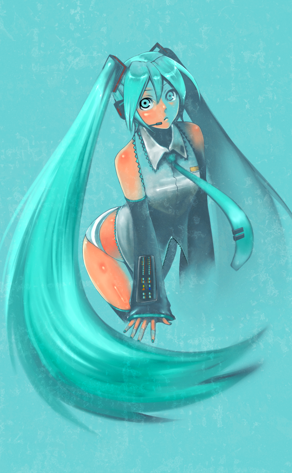 blue eyesblue hairdetached sleeveslong hairnecktiepantiessolostriped clothesstriped pantiestwintailsunderwear