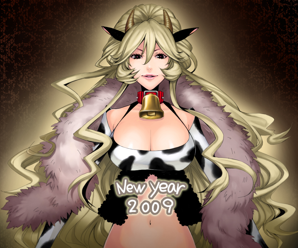 00s1girl2009animal earsanimal printbellblonde hairbreastscleavagecow earscow printcowbellfemale focushornslarge breastslong hairnavelnew yearsolovery long hair