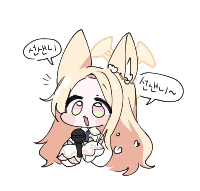 1girlanimal earsblonde hairfox earshalokorean textmicrophonesimple backgroundsolowhite backgroundyellow halo