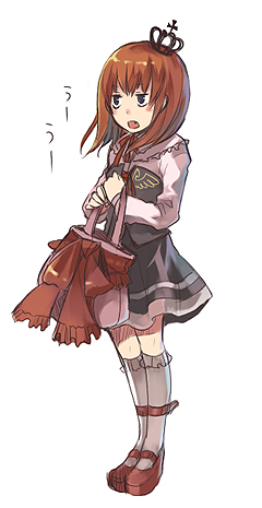 :o00s1girlbagblack dressblue eyesbowbrown haircrowndressfemale focusfull bodyhandbagkneehighsopen mouthribbonshoesshort hairskirtsockssolostandinguu~white background