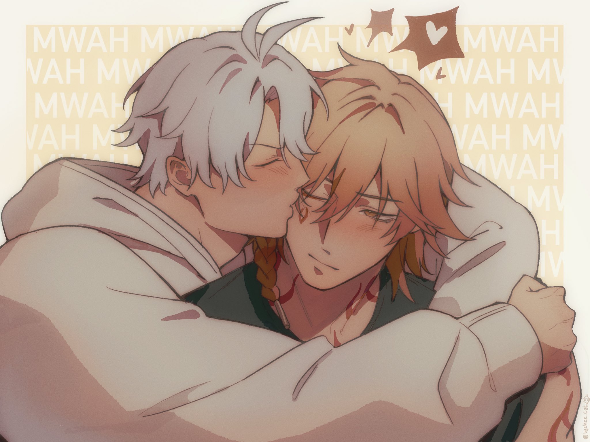 2boysantenna hairarm tattooblack tank topblonde hairblushbraidchest tattooclosed eyesfacial tattoogradient hairhearthoodhood downhoodiemale focusmedium hairmulticolored hairmultiple boysneck tattooparted bangsred hairred tattooshort hairside braidspoken hearttank toptattoowhite hairwhite hoodieyaoiyellow eyes