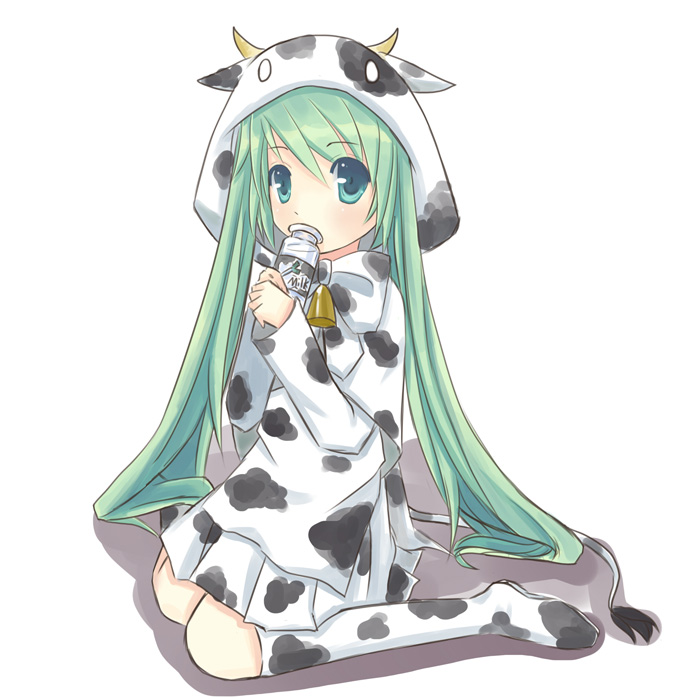 00s1girl2009animal costumeanimal printbellcow costumecow printfemale focusgreen eyesgreen hairkneehighslong hairmatching hair/eyesmilknew yearsittingsockssolovery long hair
