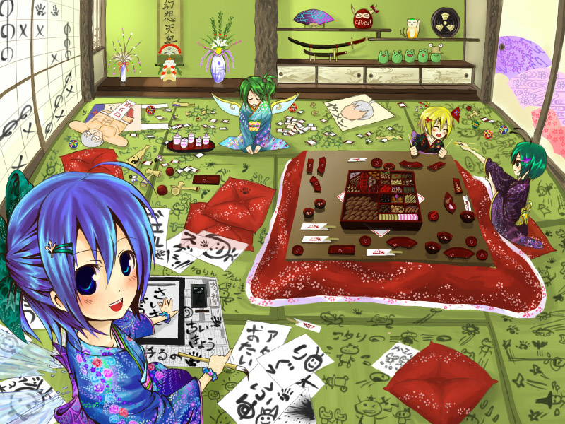 sky pizz, houjou satoko, houjou satoshi, maebara keiichi, higurashi no naku koro ni, 00s, 1girl, 2boys, blonde hair, blue eyes, brown hair, dress, hairband, multiple boys, pantyhose, red eyes, sailor dress, shirt, short hair, stuffed animal, stuffed toy, sweatdrop, teddy bear, toy, white shirt