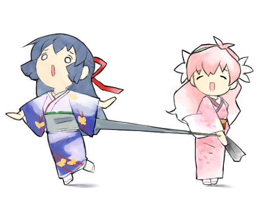 00s2girlschibiclosed eyesjapanese clotheskimonomultiple girlso oobiobi spinopen mouthsashsimple backgroundsmilespinningtabiwhite background