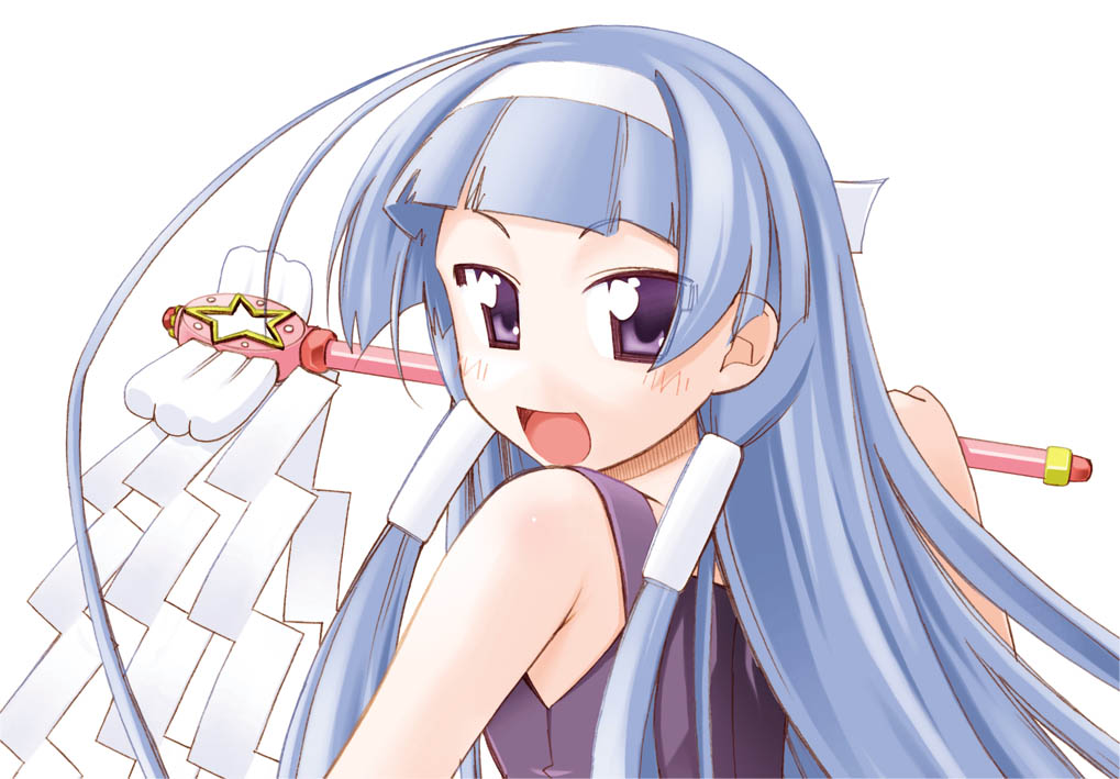 wnb mark, nerine, shuffle!, absurdres, highres, scan, 00s, blue hair, long hair, pointy ears, solo, thighhighs