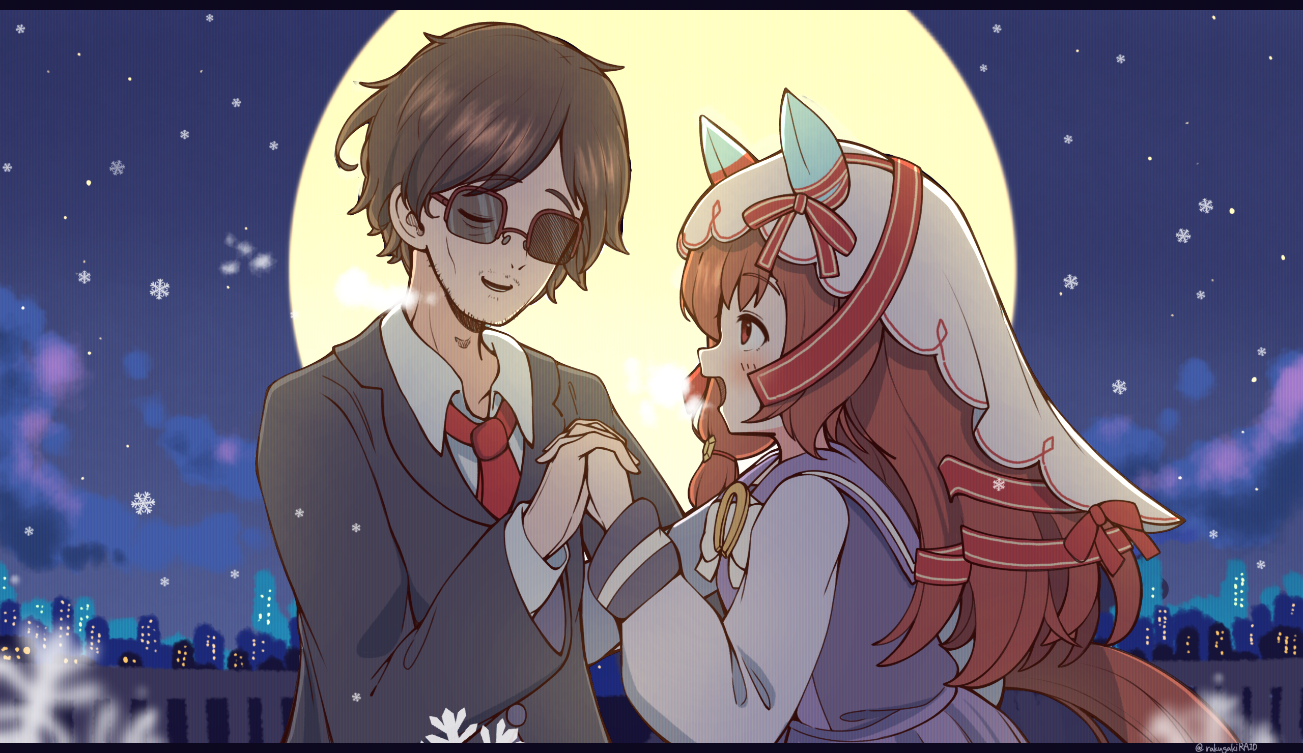 :d1boy1girlanimal earsblack jacketblushbowbowtiebrown hairclosed eyescollared shirtdayfull moonhair ribbonholding handshorse earshorse girlhorse tailhorseshoe ornamentinterlocked fingersjacketlong hairmoonnecktienightnight skyopen mouthorange eyesorange hairoutdoorsover-rim eyewearpurple sailor collarpurple shirtred necktiered ribbonred-framed eyewearribbonsailor collarschool uniformsemi-rimless eyewearserafukushirtshort hairskyskylinesmilesnowflakessunglassestailtracen school uniformupper bodyveilwhite bowwhite bowtiewhite shirtwhite veilwinter uniform