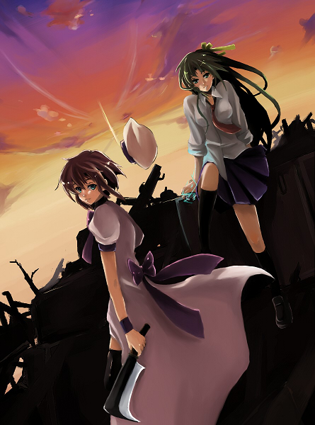 00s2girlsbillhookblue eyesbrown hairdresselectricityelectroshock weaponenergygreen eyesgreen hairgunhashitsuki natahathatchetless-than-lethal weaponlong hairmultiple girlsnata (tool)rifleshort hairstun guntaserweapon