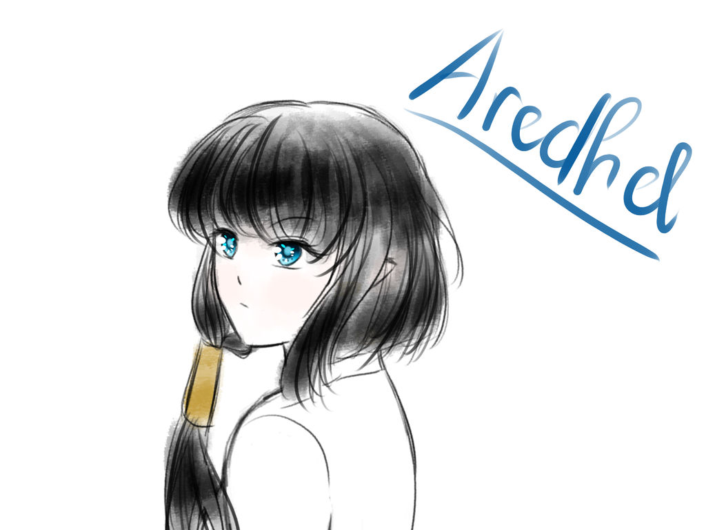 1girlblack hairblue eyesblunt endscharacter nameclosed mouthelfeyebrows hidden by haireyelashesfemale focuspointy earssimple backgroundsoloupper bodywhite background