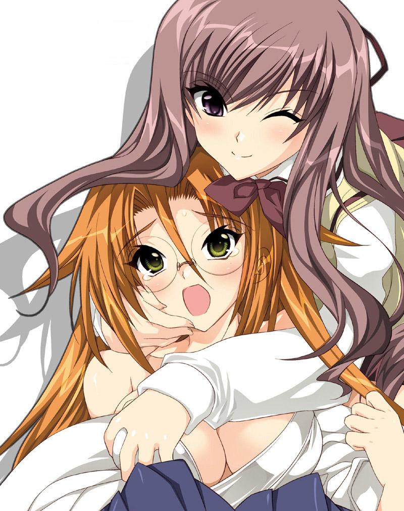 8n0 g, asuna (blue archive), asuna (school uniform) (blue archive), blue archive, highres, 1girl, black skirt, blonde hair, blue bow, blue bowtie, blue eyes, blue halo, blush, bow, bowtie, breasts, hair over one eye, halo, large breasts, long hair, looking at viewer, open mouth, pleated skirt, scrunchie, shirt, skirt, sleeves rolled up, solo, thighs, v, very long hair, white shirt, wrist scrunchie