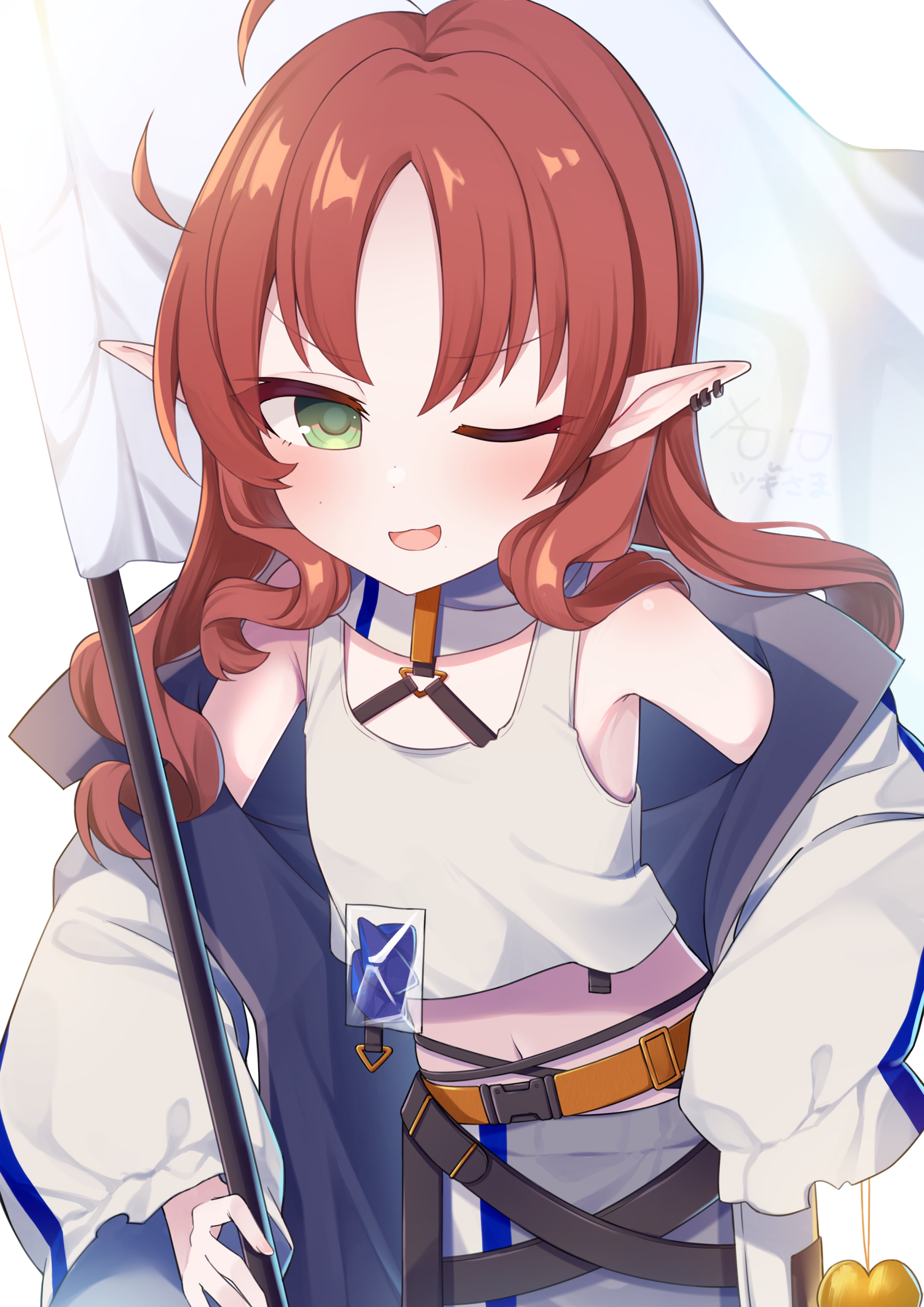 mourderousx, lyn (fire emblem), fire emblem, fire emblem: the blazing blade, nintendo, highres, 1girl, armlet, bare shoulders, beach, bikini, blue bikini, blue sky, blush, breasts, cleavage, closed mouth, cloud, collarbone, earrings, flower, flower armlet, green eyes, green hair, hairband, high ponytail, jewelry, large breasts, long hair, navel, ocean, outdoors, ponytail, sky, solo, stomach, swimsuit, very long hair, water, wristband