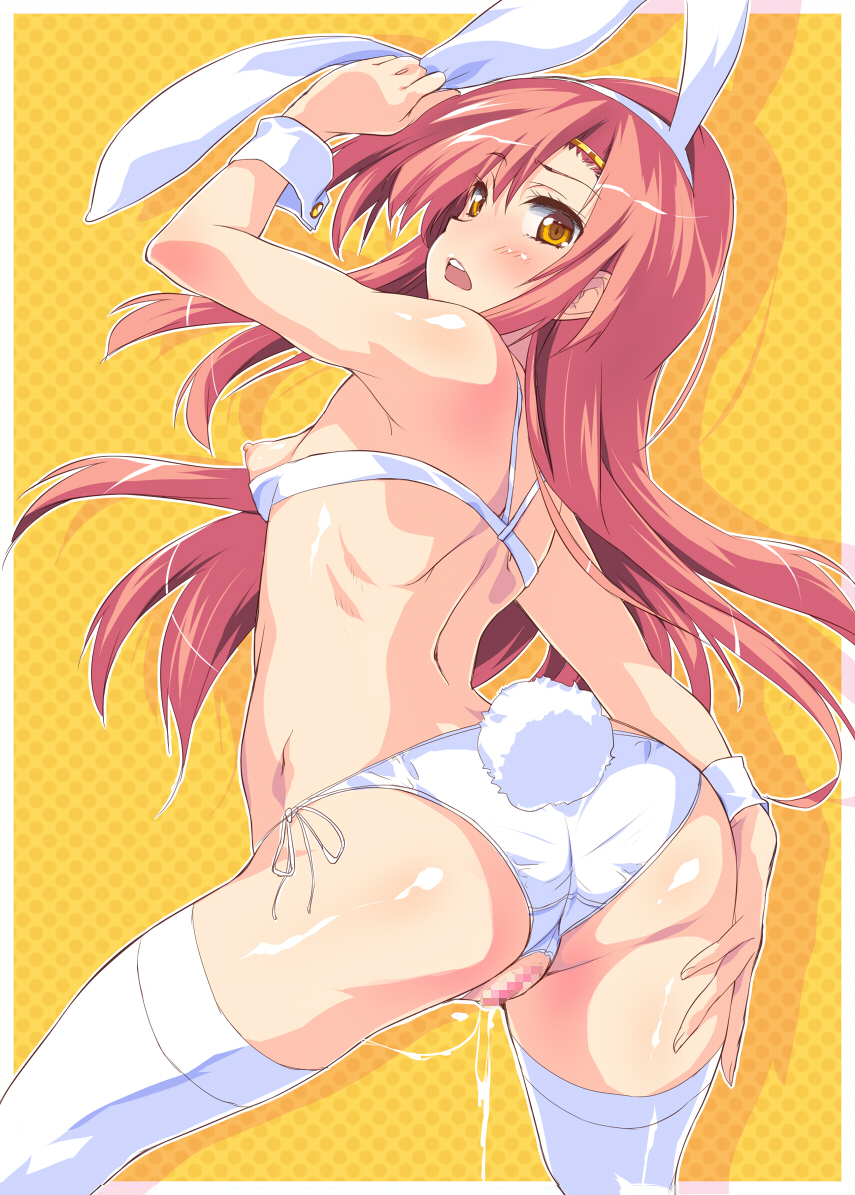 animal earsassblushbreastsbunny earsbunny-tailcrotchless clothescrotchless pantiesfemaleFlag for Deletionlong hairopen mouthpantiespink hairpussy juiceshinyshiny skinside-tie pantiessolotailthighhighsunderwearwhite legwearwrist cuffs