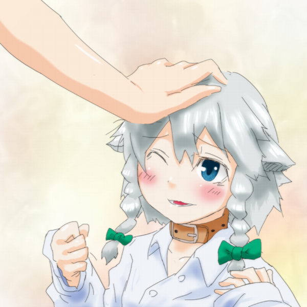 1girlanimal earsblue eyesblushbraidcollardog earsfemale focushead patheadpatkemonomimi moderibbonshort hairsolo focustwin braids