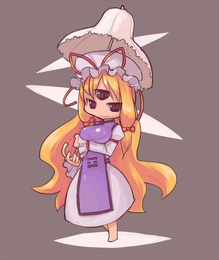 1girlbarefootblonde hairbreastschibifemale focushathat ribbonlong hairparasolribbonsolothird eyeumbrella