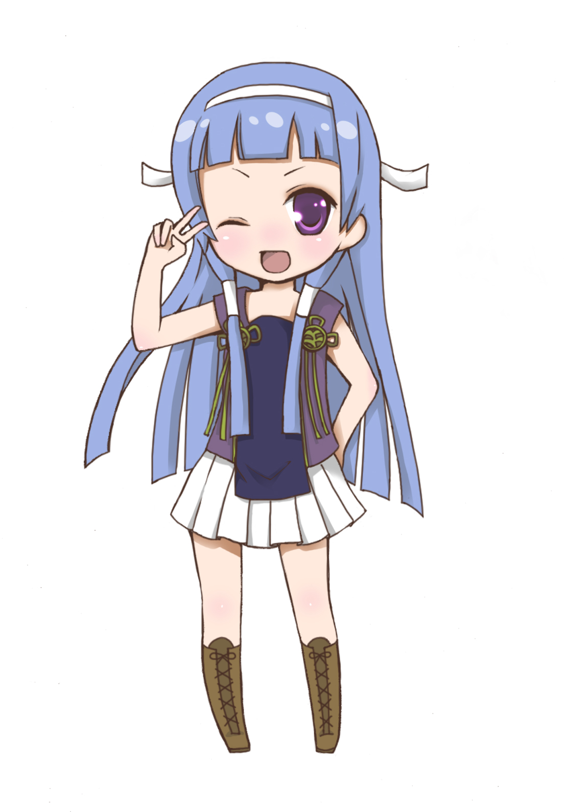 00s1girlblue hairblunt bangschibifemale focushair tubeshairbandlong hairone eye closedpleated skirtpurple eyesskirtsolowhite skirtwink