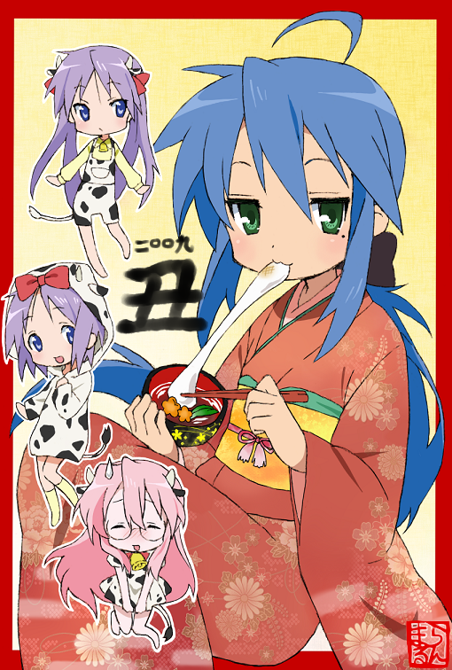 ass, blush, fallen down, food, panties, pink hair, snow, solo, taiyaki, thighhighs, twintails, underwear, upskirt, wagashi, white panties, yellow eyes