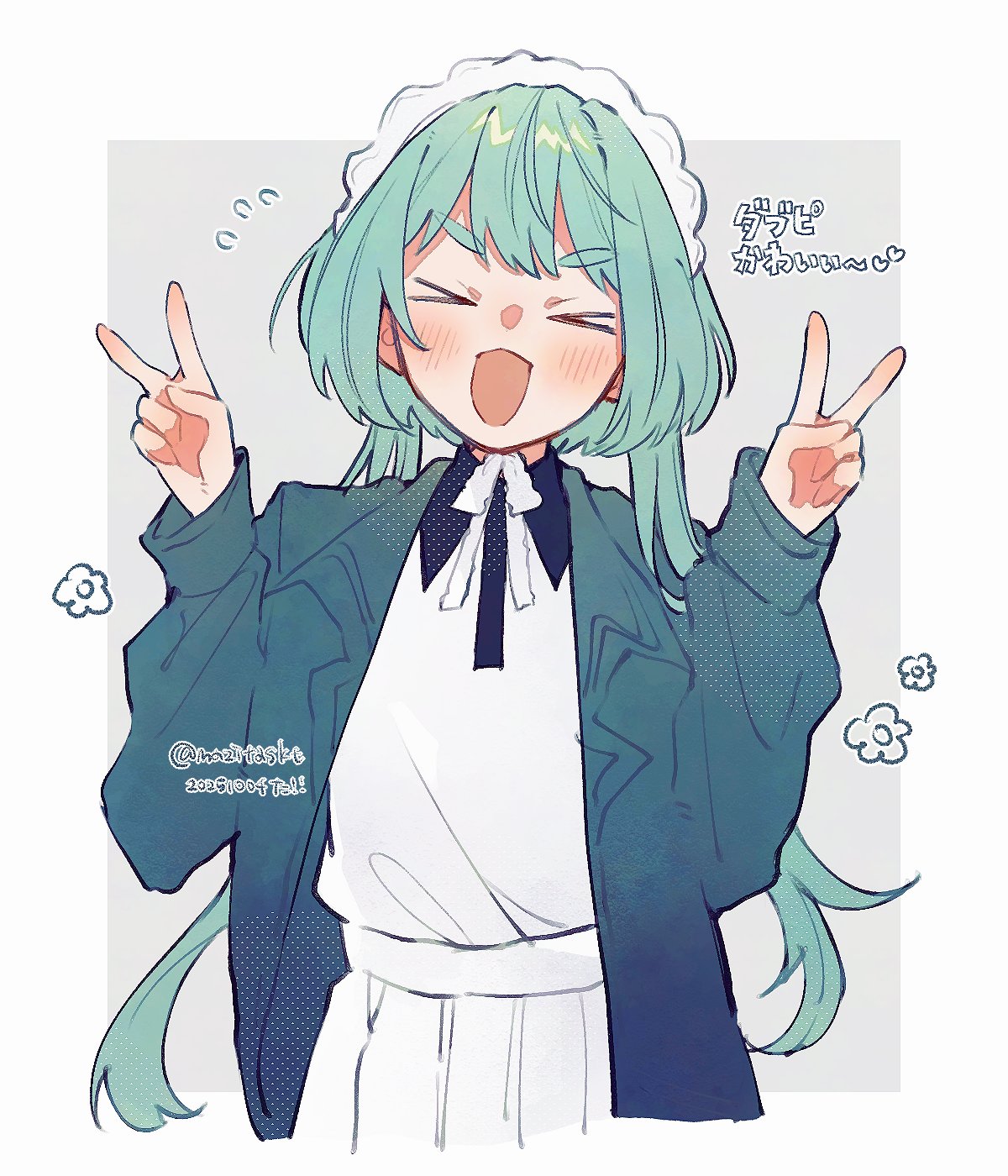 mikeou, pink chuchu, highres, 2girls, blonde hair, brown hair, day, gloves, green eyes, kneehighs, long hair, mittens, multiple girls, plaid clothes, plaid skirt, red eyes, scarf, short hair, skirt, sky, snow, socks, white mittens