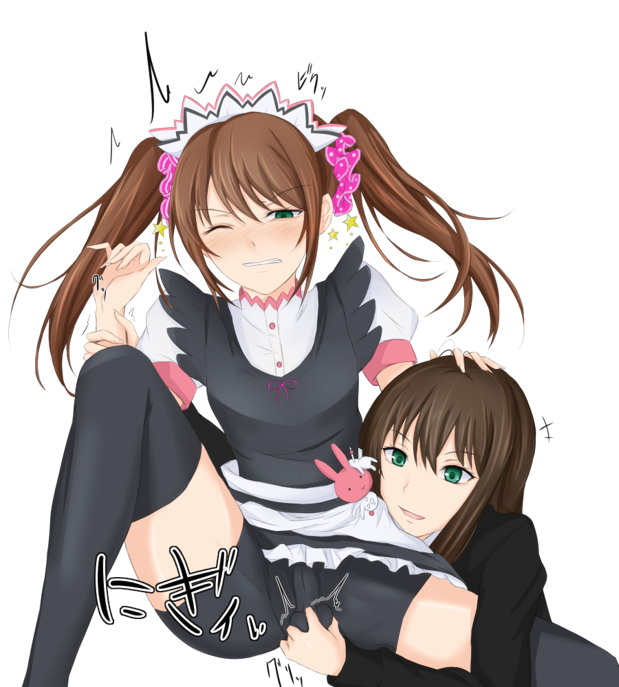 1boyandrogynousbike shortsblushbrown hairbulgecanon crossdressingfemalefemboyfemdomFlag for Deletiongirlygreen eyesmaidmaid headdressmalepainsqueezing testiclesstraighttesticle grabthighhighstrapwince