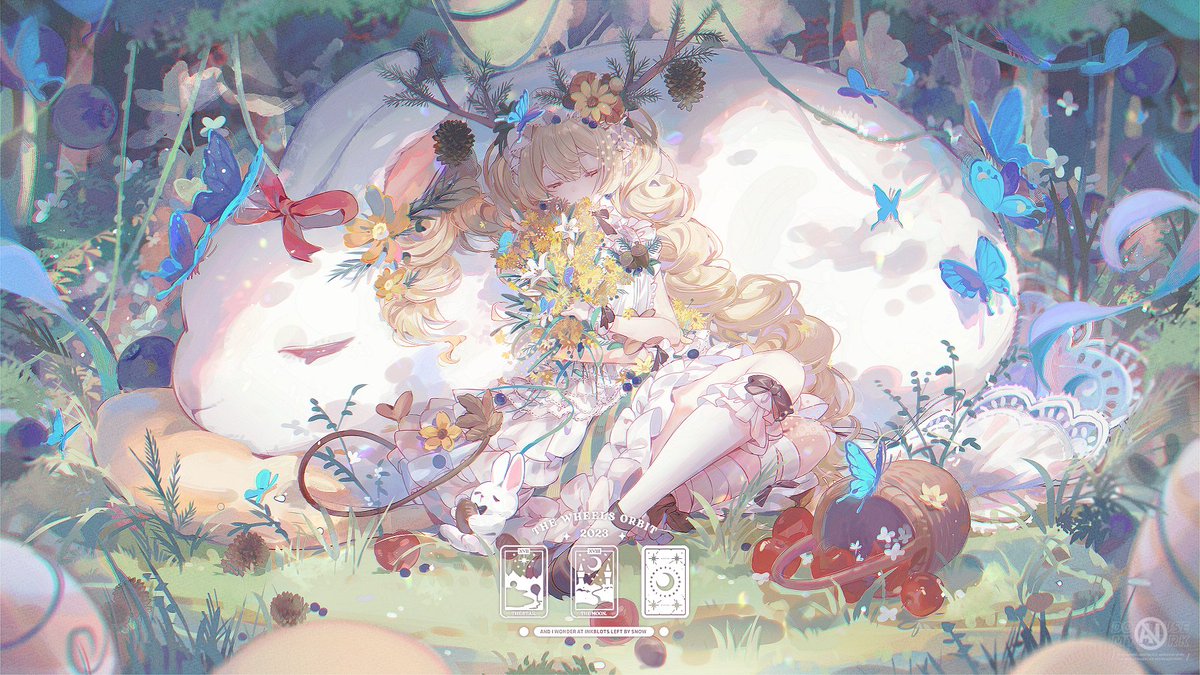 0roshioji3ran, abby (wuthering waves), carlotta (splashing summer) (wuthering waves), carlotta (wuthering waves), changli (laurel nymph) (wuthering waves), changli (wuthering waves), iuno (wuthering waves), wuthering waves, commentary request, highres, translation request, 3girls, ahoge, ancient greek clothes, aqua eyes, bare shoulders, black skirt, blue eyes, blue hair, blush, breasts, bright pupils, chromatic aberration, closed mouth, crossed arms, gradient hair, greco-roman clothes, head wreath, long hair, looking at viewer, medium breasts, miniskirt, multicolored hair, multiple girls, official alternate costume, orange eyes, pink hair, showgirl skirt, skirt, smile, twintails, very long hair, white hair, white pupils