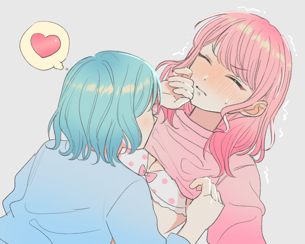 n nai nai n, iseri nina, girls band cry, highres, 1girl, art program in frame, blue jacket, brown hair, jacket, looking at viewer, low twintails, nail polish, red nails, short hair, short twintails, simple background, solo, tongue, tongue out, twintails, upper body, v, white background