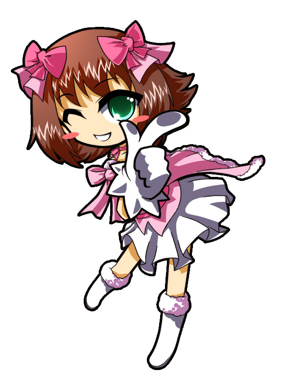 00s1girlbootsbrown hairchokercute & girly (idolmaster)dressfemale focusfull bodyglovesgreen eyesidolone eye closedshort hairsimple backgroundsolowink