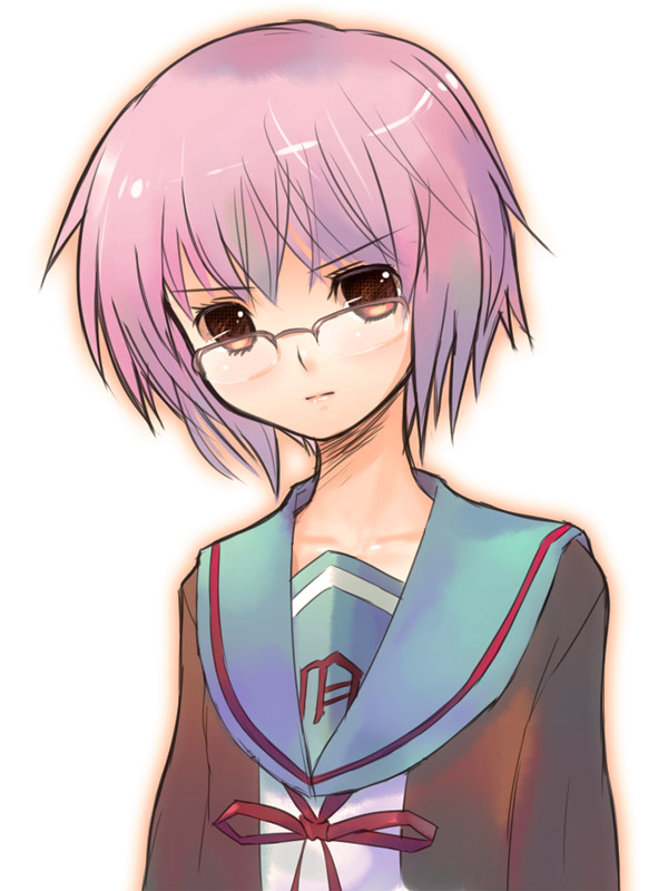 asahina mikuru, nagato yuki, suzumiya haruhi no yuuutsu, silver hair, jpeg artifacts, non-web source, 00s, 2girls, brown eyes, brown hair, long hair, magazine (object), multiple girls, name tag, official alternate hairstyle, school uniform, serafuku, short hair, signing, twintails, waitress