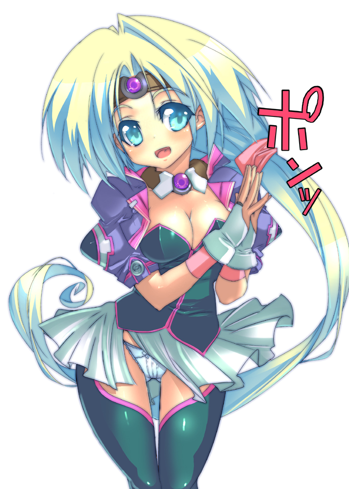 1990s (style)1girlblue eyesbreastscircletcleavagefemale focusfingerless glovesgloveslong hairpantiesretro artstylesolothighhighsunderwearvery long hair
