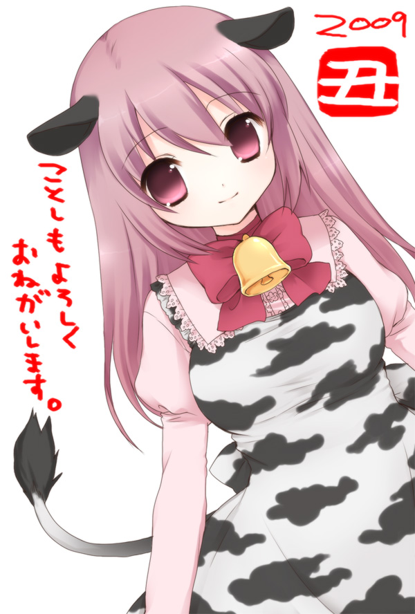 00s1girl2009animal earsanimal printbellcow earscow girlcow printfemale focuslong hairnew yearpurple eyespurple hairsimple backgroundsolotailwhite background