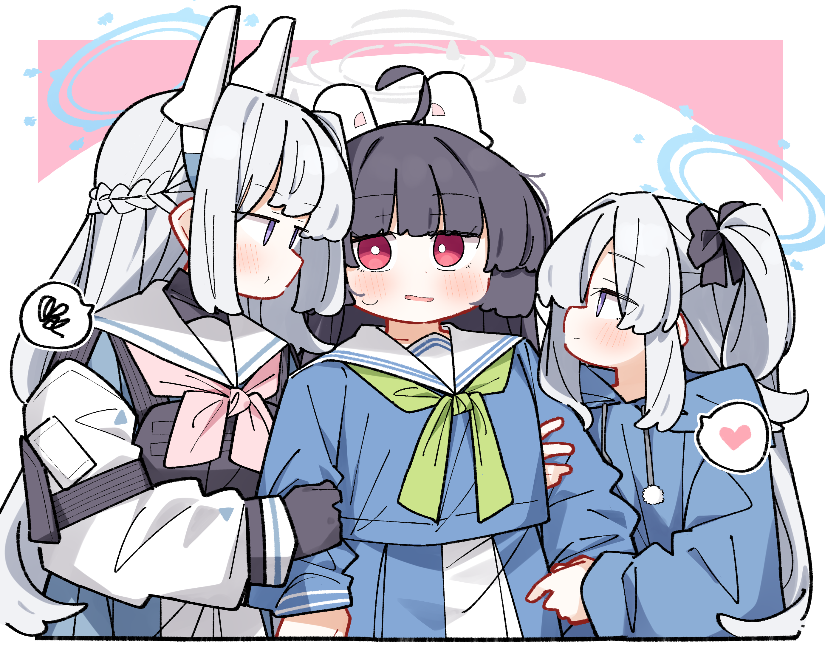 hanaji, daidouji tomoyo, furude rika, houjou satoko, kinomoto sakura, cardcaptor sakura, higurashi no naku koro ni, bad id, bad pixiv id, third-party edit, 2girls, ahoge, blonde hair, blue hair, child, cosplay, dress, furude rika (cosplay), hairband, houjou satoko (cosplay), long hair, multiple girls, parody, purple eyes, sailor dress, school uniform, short hair, smile, tomoeda middle school uniform
