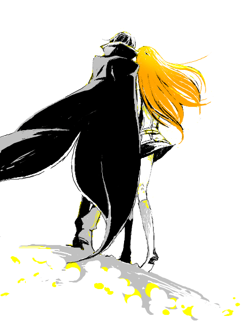 sanpo kbg, borongo, great sabrecat, hero (dq5), sancho (dq5), slime (dragon quest), slime knight, dragon quest, dragon quest v, highres, 2boys, armlet, armor, black eyes, black hair, bracer, brown gloves, brown hair, cloak, creature, creature on head, facial hair, floating clothes, gem, gloves, holding, holding gem, holding leaf, holding staff, holding sword, holding weapon, jewelry, leaf, low ponytail, male focus, multiple boys, muscular, muscular male, mustache, open mouth, plume, ponytail, profile, purple cloak, purple turban, silver armlet, staff, sword, tunic, turban, weapon, white background, white tunic