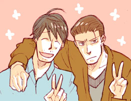 mizuno minato, hiiragi kagami, kusakabe misao, minegishi ayano, lucky star, 00s, blush, brown hair, dress shirt, long hair, necktie, purple hair, shirt, sketch, tsurime, twintails