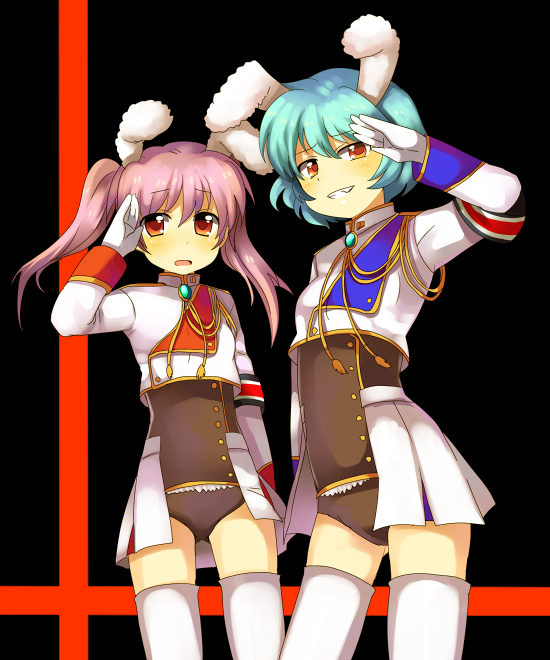 kuroda bb, original, 1girl, animal ears, aqua background, argyle background, argyle clothes, black thighhighs, blue eyes, blush, brown hair, bustier, dog ears, female focus, groin, lingerie, long hair, looking at viewer, navel, panties, side-tie panties, sitting, solo, thighhighs, underwear, wariza, white panties