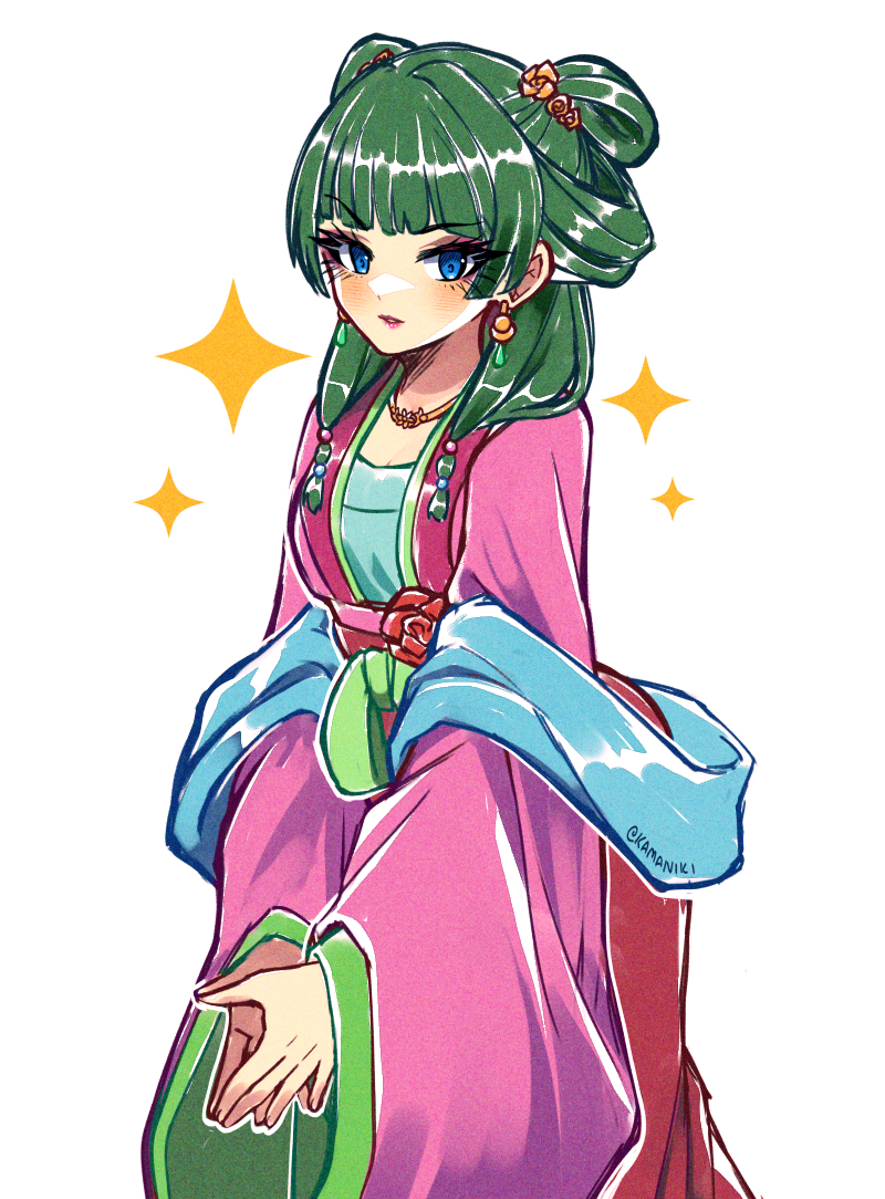 okama, original, highres, 1girl, :o, blue eyes, dress, female focus, flat chest, green hair, laundry, open mouth, purple eyes, rooftop, solo, white dress