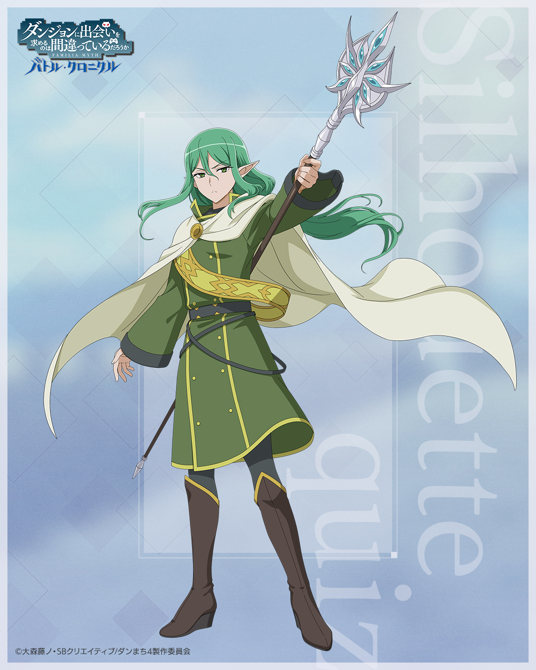 1girlblack bootsbootsclosed mouthcoatcollared coatcopyright logocopyright namecopyright noticeelffloating capefloating hairfull bodygreen coatgreen eyesgreen hairhair between eyesholdingholding stafflogolong hairmage staffpointy earssolostaffstandingv-shaped eyebrows
