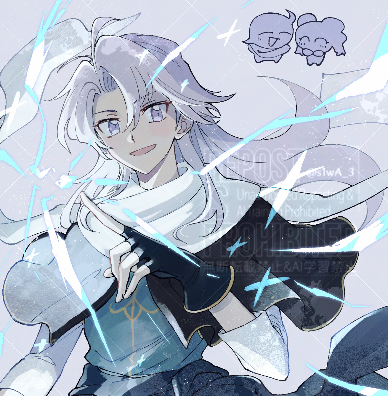 one-take, plana (blue archive), blue archive, 1girl, black choker, black coat, black eyes, black hairband, black sailor collar, black serafuku, braid, chibi, choker, coat, hair over one eye, hairband, halo, long hair, long sleeves, looking at viewer, neckerchief, red halo, red pupils, sailor collar, school uniform, serafuku, single braid, umbrella gun, very long hair, white hair, white neckerchief