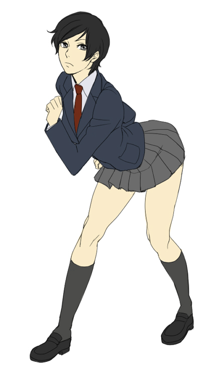 bent overblack hairblazergrey eyesjacketkneehighsloafersnecktieschool uniformshoesshort hairskirtsockssolostanding
