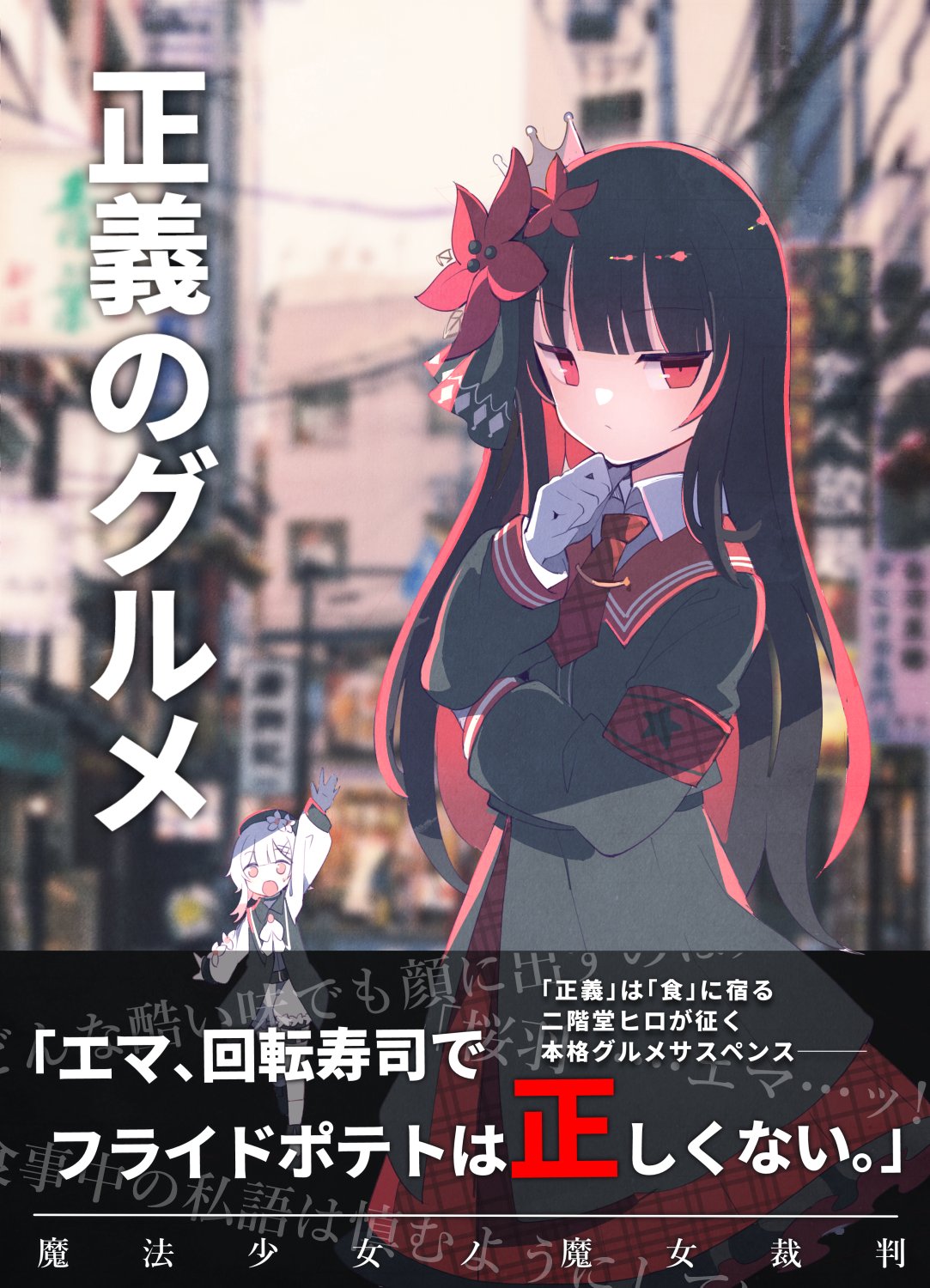2girlsarmbandberetblack dressblack hairblack hatcovercrowndressfake magazine coverflowerfrilled dressfrillshair flowerhair ornamenthand on own chinhand uphathime cutjapanlong hairlooking at viewermagazine covermagical girlmultiple girlsnecktieopen mouthphoto backgroundpink eyesred armbandred eyesred flowerred necktiesolo focusthinkingvery long hairwhite hair