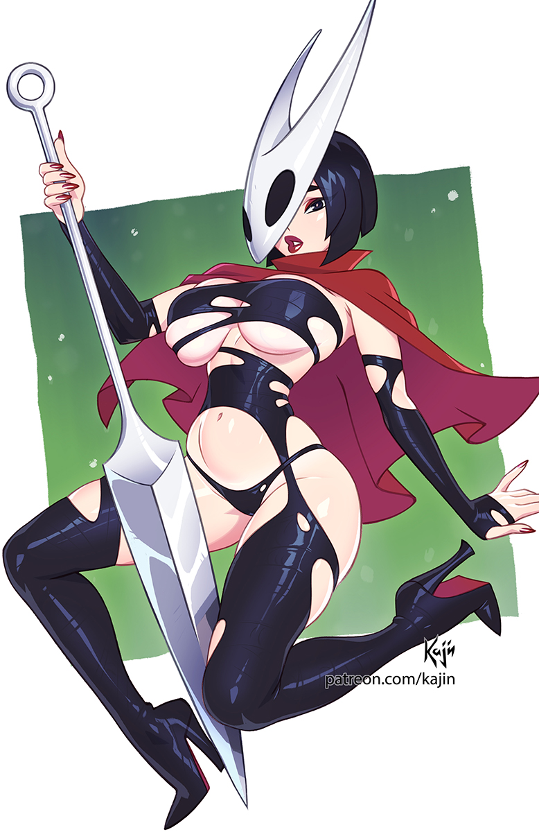 1girlblack eyesblack glovesblack hairblack pantiesbootsbreastscloakelbow gloveseyeshadowfingerless glovesgloveshigh heel bootshigh heelsholdingholding weaponhorned maskhumanizationlarge breastslooking at viewermakeupmasknavelneedle (hollow knight)pantiespatreon usernamered cloakred eyeshadowred lipsred nailsshort hairskindentationsolothigh bootsunderwearwatermarkweaponweb address
