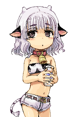 1girlanimal earsanimal printbandeau bikinibellcollarcow earscow girlcow printfemale focushornsmidriffmilknavelneck bellshortssolotailwhite hair