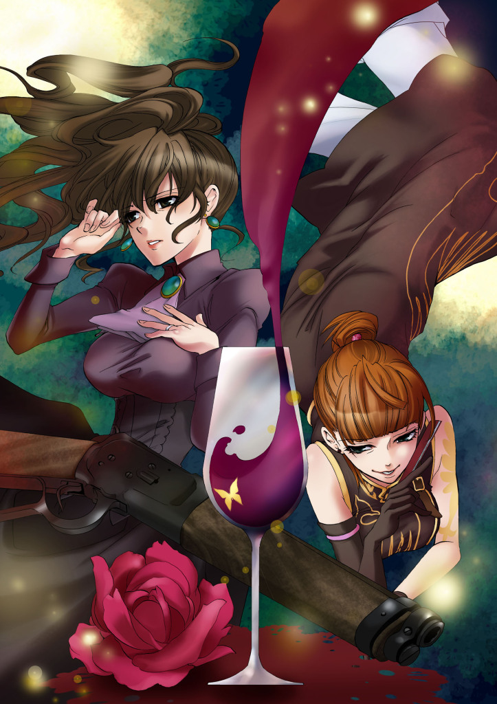 opalis, power (chainsaw man), supergirl, chainsaw man, dc comics, superman (series), highres, 2girls, ass, blonde hair, eye contact, long hair, looking at another, multiple girls, pants, red skirt, shirt, skirt