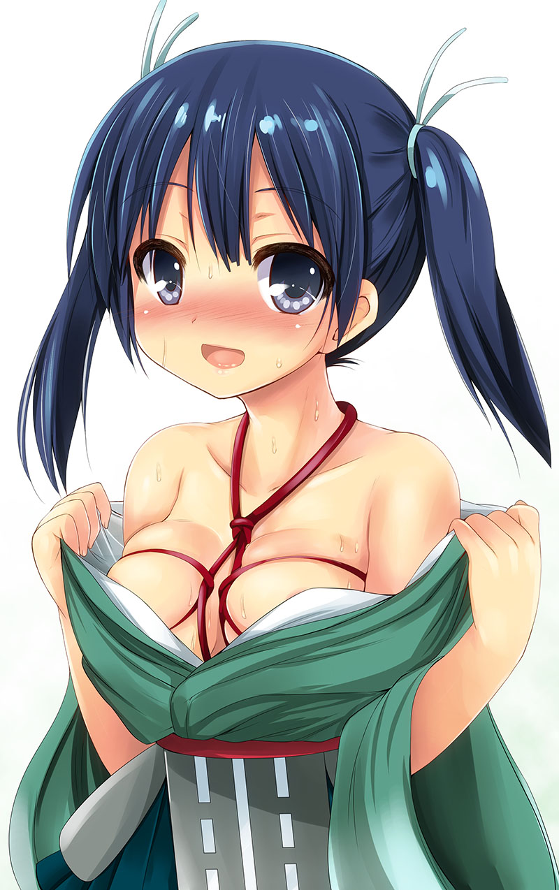yashirinda, kougei ciel nana, bemani, sound voltex, highres, 1girl, blonde hair, breasts, demon girl, demon wings, horns, large breasts, long hair, looking at viewer, navel, pointy ears, purple eyes, smile, solo, tongue, tongue out, very long hair, wings