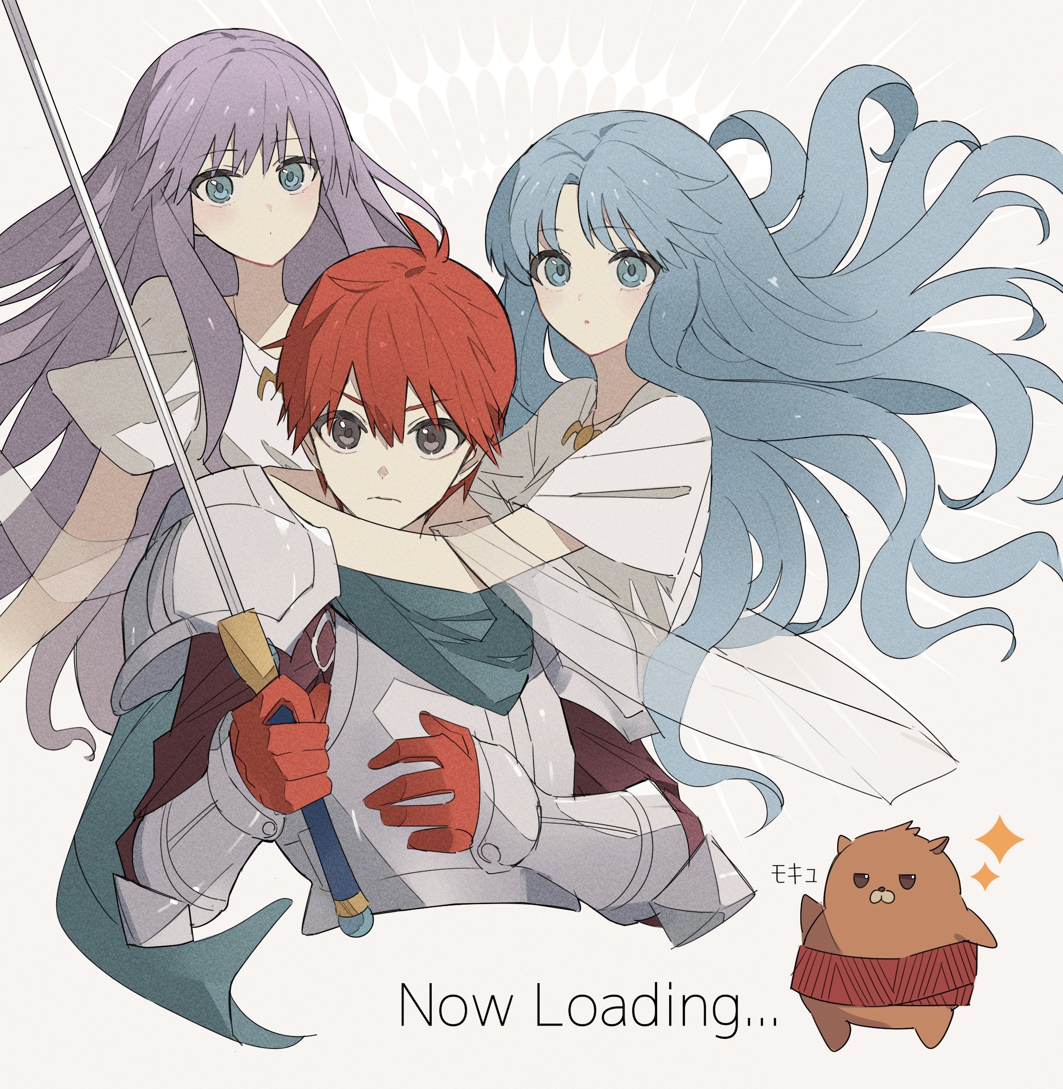 armorblue eyesblue hairbreastplatecurtained hairfloating hairgauntletsgrey eyesholdingholding swordholding weaponhuglong hairmultiple girlspauldronspikkard (ys)purple hairred hairshort hairshoulder armorsiblingssisterssparkleswordweaponwhite background