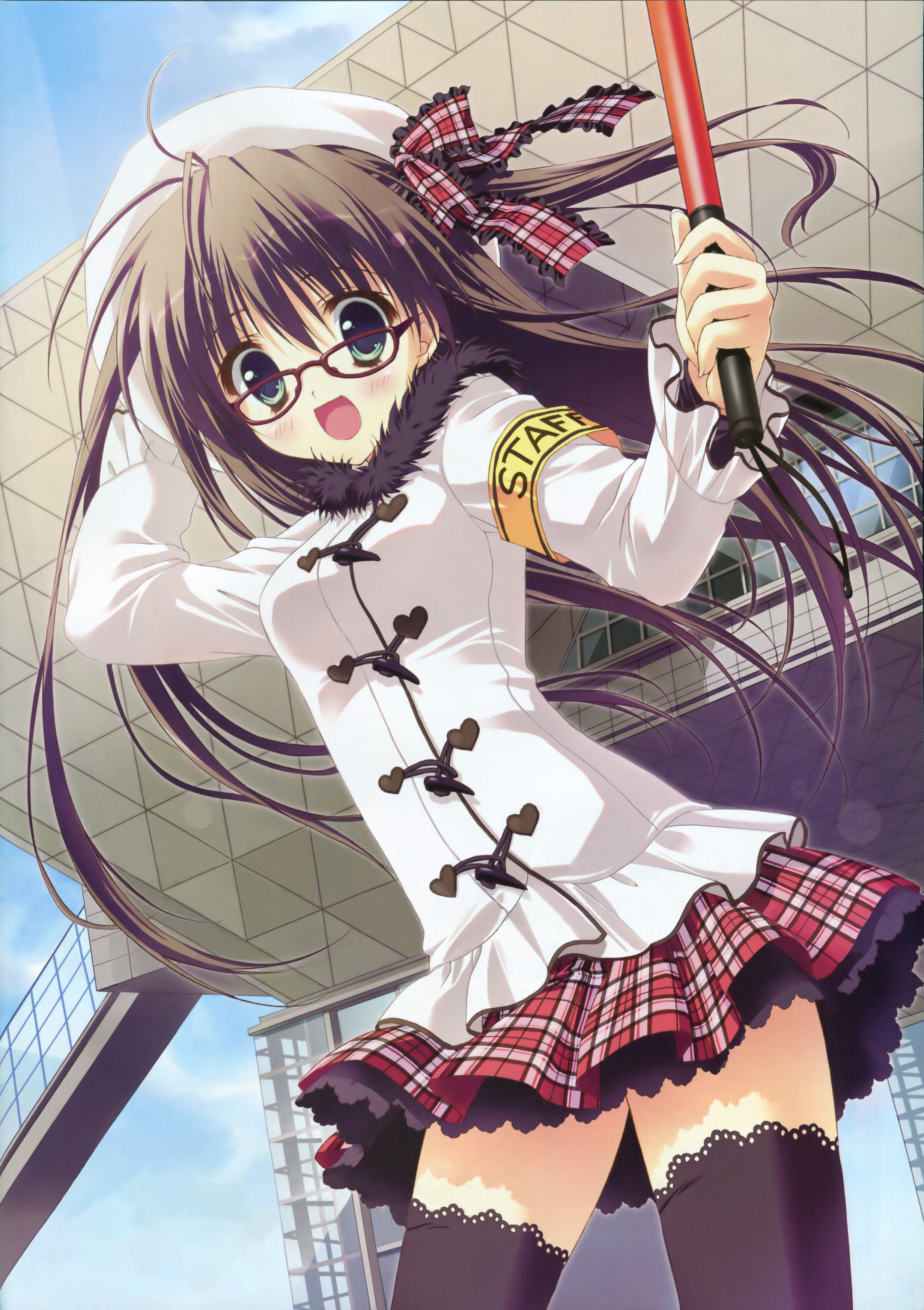 :d1girlarmbandberetblack thighhighsblushbrown haircitydayfemale focusfur trimglassesgreen eyeshathat ribbonlong hairlooking at vieweropen mouthoutdoorsplaid clothesplaid ribbonplaid skirtribbonskirtsmilesolothighhighszettai ryouiki