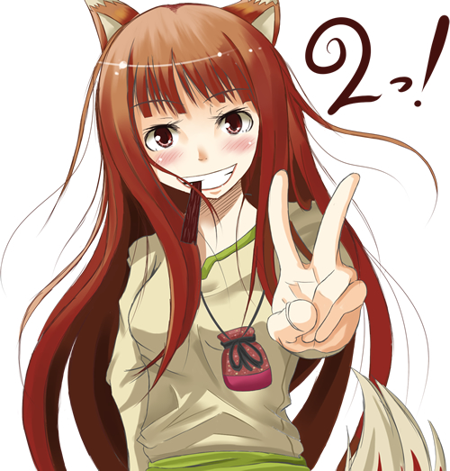 00sanimal earsblushbrown eyesbrown haireatingfoodjerkylong hairmouth holdpouchsmilesolotailvwolf earswolf tail