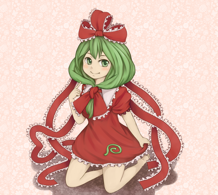 yasaka minato, mutou megumi, hal, wrestle angels, 1girl, ahoge, bed, blush, bow, breasts, female focus, hair bow, half updo, lying, medium breasts, naked ribbon, navel, nipples, nude, on back, purple eyes, pussy, red hair, ribbon, solo, uncensored