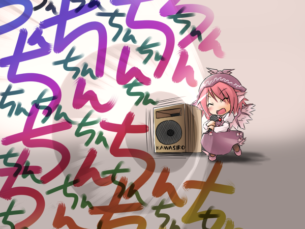:d1boy1girlchibiclosed eyesfemale focushatmicrophonemusicopen mouthpink hairshort hairsingingsmilesolospeakerwings