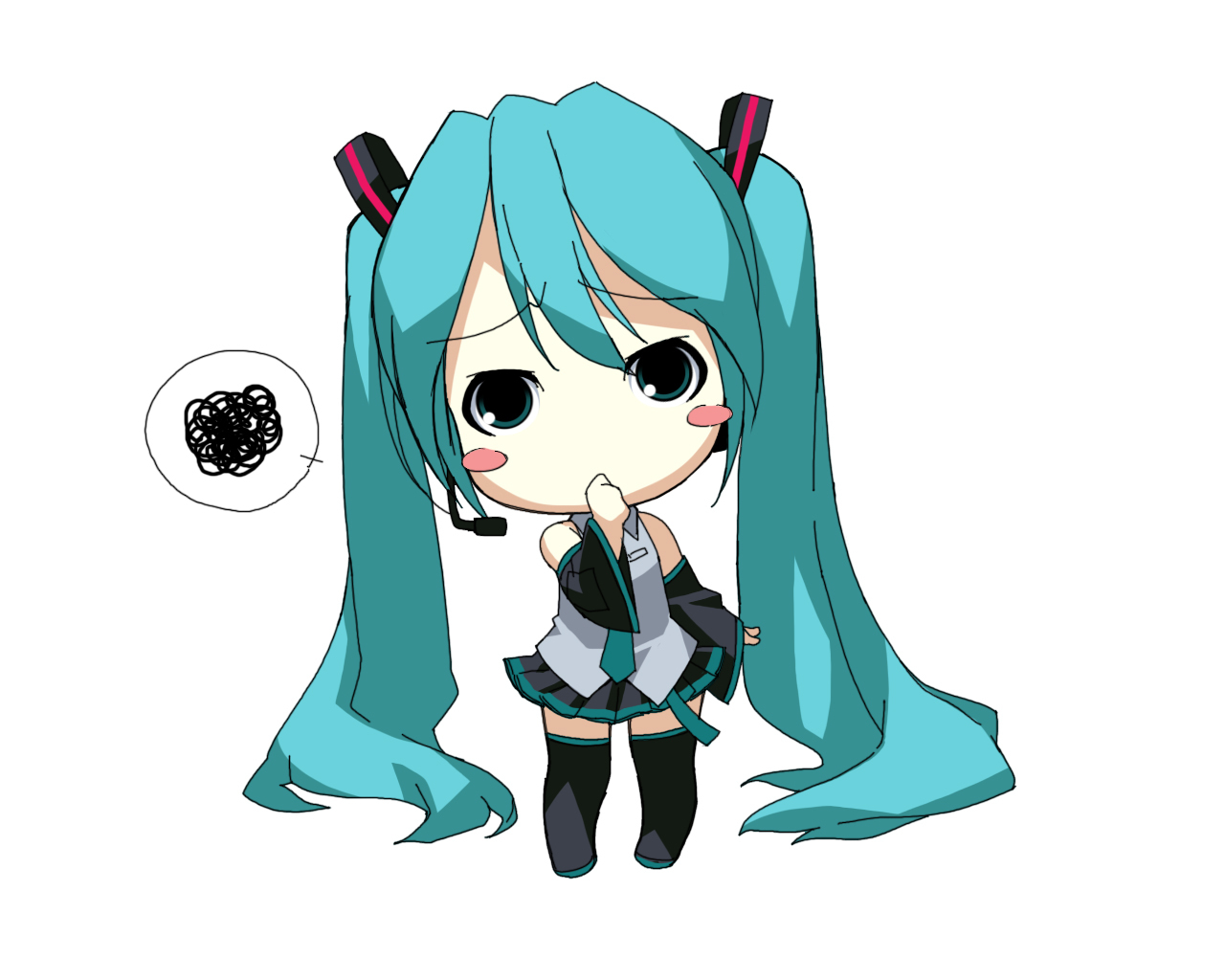 1girlaqua eyesaqua hairbare shouldersblushbootschibidetached sleevesfemale focushand on own chinheadsetlong hairnecktiepleated skirtsimple backgroundskirtsolostandingstroking own chinthigh bootsthighhighstwintailsvery long hairzettai ryouiki