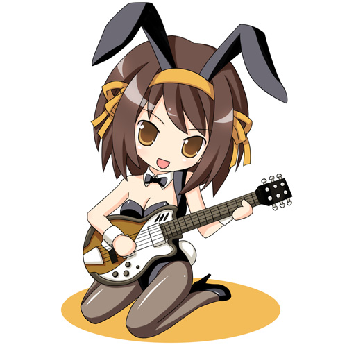 00s1girlanimal earsbreastsbrown eyesbrown hairchibifake animal earsfemale focusfull bodyguitarhairbandinstrumentpantyhoseplayboy bunnyrabbit earssimple backgroundsolo