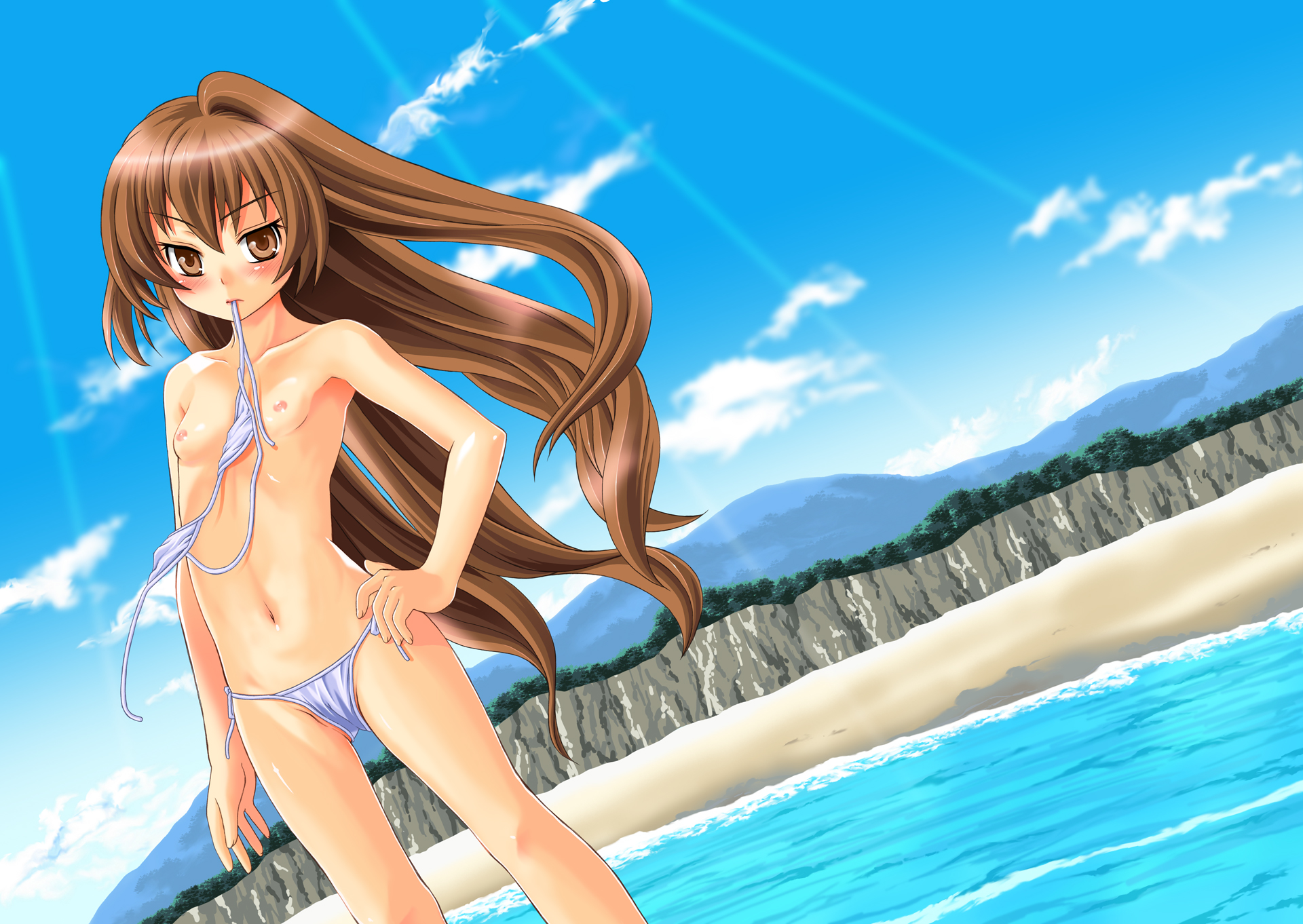 00s1girlbikinibreastsbrown eyesbrown hairdayfemale focuslolilong hairmouth holdnipplesside-tie bikini bottomsmall breastssolostring bikiniswimsuittopless female