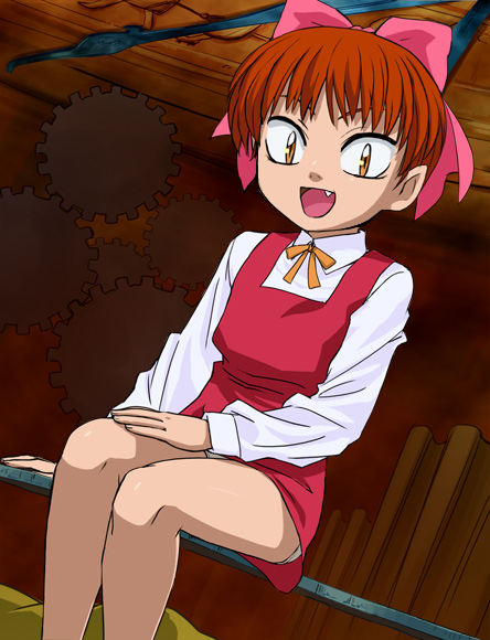 1girlchildfangfemale focusorange eyespantiespantyshotpointy earsred hairshort hairsittingsolounderwear