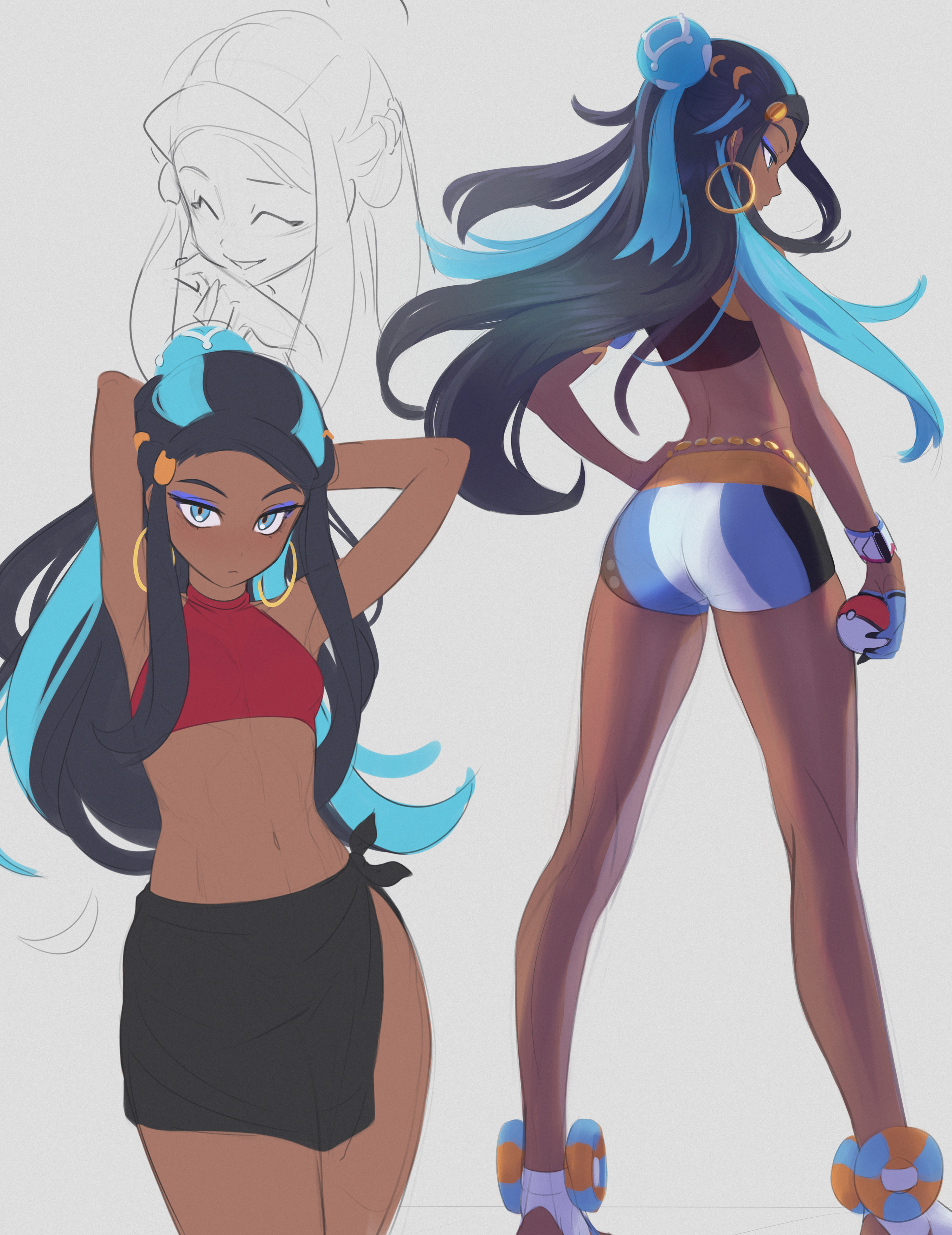 1girlsanonds31aqua hairarmletarms behind headassbelly chainbike shortsblack hairblue eyeshadowclosed mouthdark skindark-skinned femaledynamax bandearringseyeshadowfemaleFlag for Deletionflat colorgloveshair bunhand on own hipholdingholding poke ballhoop earringsjewelrylong hairlooking downmakeupmulticolored hairmultiple viewspoke ballpoke ball (basic)pokemonpokemon: twilight wingsred vestsingle hair bunstandingtwo-tone hairvest